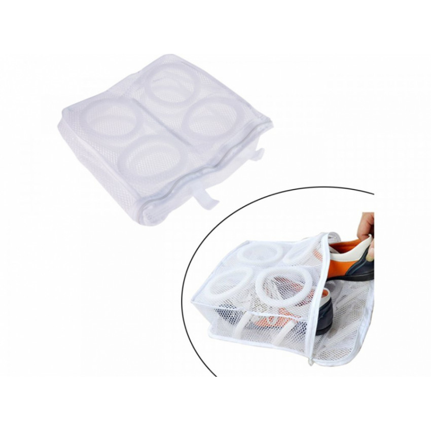 Sieťka na pranie topánok slúži na ochranu obuvi počas prania v automatickej práčke. Je vyrobená z kvalitnej polyesterovej sieťoviny, ktorá je odolná a zároveň jemná, aby zabezpečila dokonalé očistenie bez rizika poškodenia obuvi.