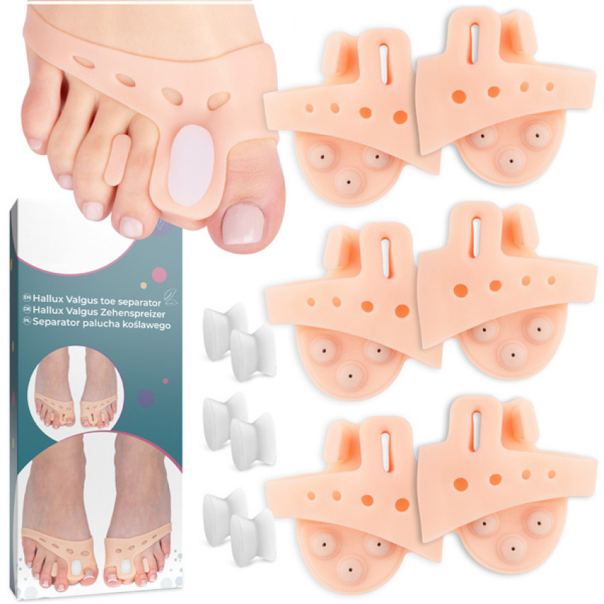Efektívne riešenie pre osoby trpiace deformáciami prstov, ako sú haluxy alebo prekrývajúce sa prsty. Účinná korekcia a oddelenie prstov zabraňuje ich prekrývaniu, koriguje zakrivenie a chráni bolestivé miesta.