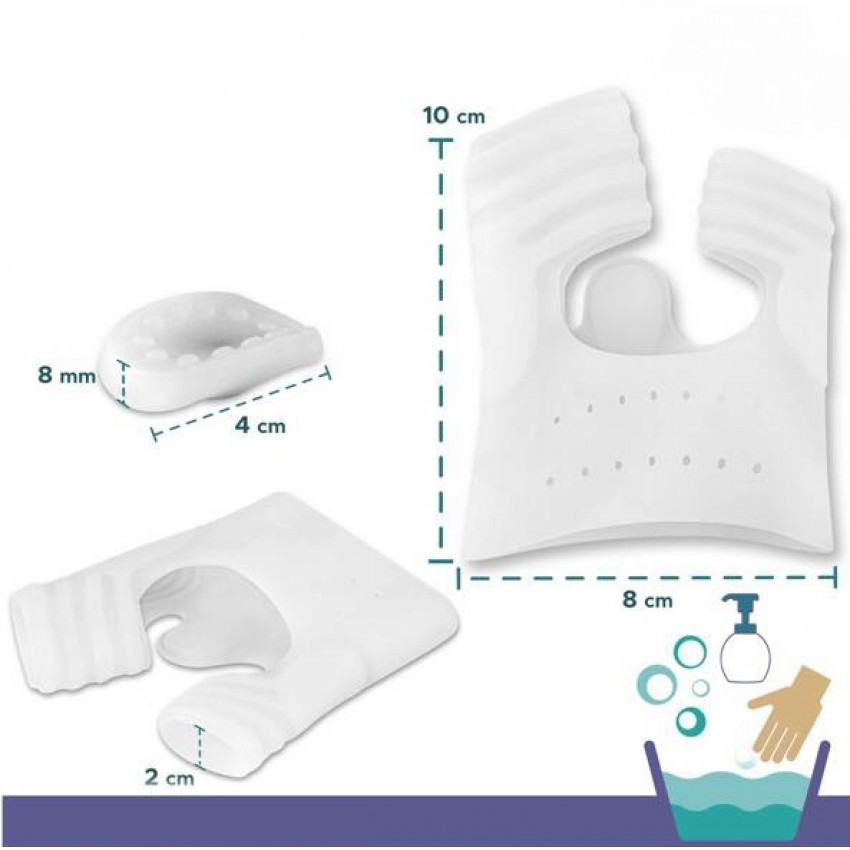 Obväz je vyrobený z mimoriadne mäkkého a pružného silikónu, ktorý sa dokonale prispôsobí kontúram Vašej nohy, čím zabezpečí maximálny komfort. V balení nájdete aj špeciálny silikónový vankúšik, ktorý poskytuje doplnkovú ochranu v oblastiach s vyčnievajúcim kostným výrastkom. Obväzy slúži na komfortné nosenie s ľubovoľným typom obuvi vďaka svojej priedušnej konštrukcii.