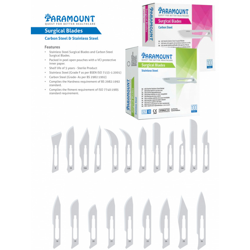 Paramount Surgical Blades sú ideálnym riešením pre zdravotníkov, ktorí požadujú vysokokvalitné chirurgické nástroje pre svoju prácu. S výberom medzi carbon steel a stainless steel čepeľami a širokou škálou veľkostí sú tieto čepele pripravené pokryť všetky potreby chirurgických a zdravotníckych zariadení.