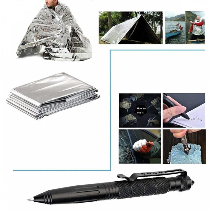 SOS sada na prežitie 12v1 je zabalená v praktickom puzdre preto ju možno brať bez problému so sebou na výlety, stanovanie, dovolenky, tábory, kempovanie, expedície, turistiku atď.. Všade poskytne veľa možností jej využitia. Obsahuje celkom 12 praktických vecí. Celá sada je umiestnená vo vodotesnej uzatvárateľnej krabičke s dvoma pútkami, pre zavesenie a nosenie napríklad na krku, alebo priviazanie k batohu atď..