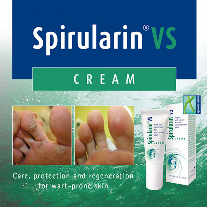 Spirularin VS krém na bradavice je špeciálne vyvinutý ochranný a regeneračný krém, ktorý pomáha zabraňovať šíreniu vírusov HPV spôsobujúcich bradavice. Obsahuje patentovaný extrakt Spiralin®, ktorý vytvára na pokožke prírodnú ochrannú bariéru, čím zabraňuje prenikaniu vírusov do zdravých buniek.