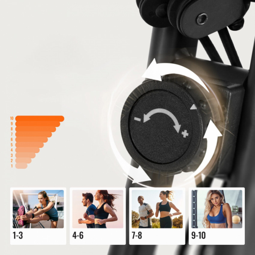 - Prispôsobiteľná záťaž – mechanický odpor umožňuje výber úrovne záťaže podľa individuálnych potrieb.