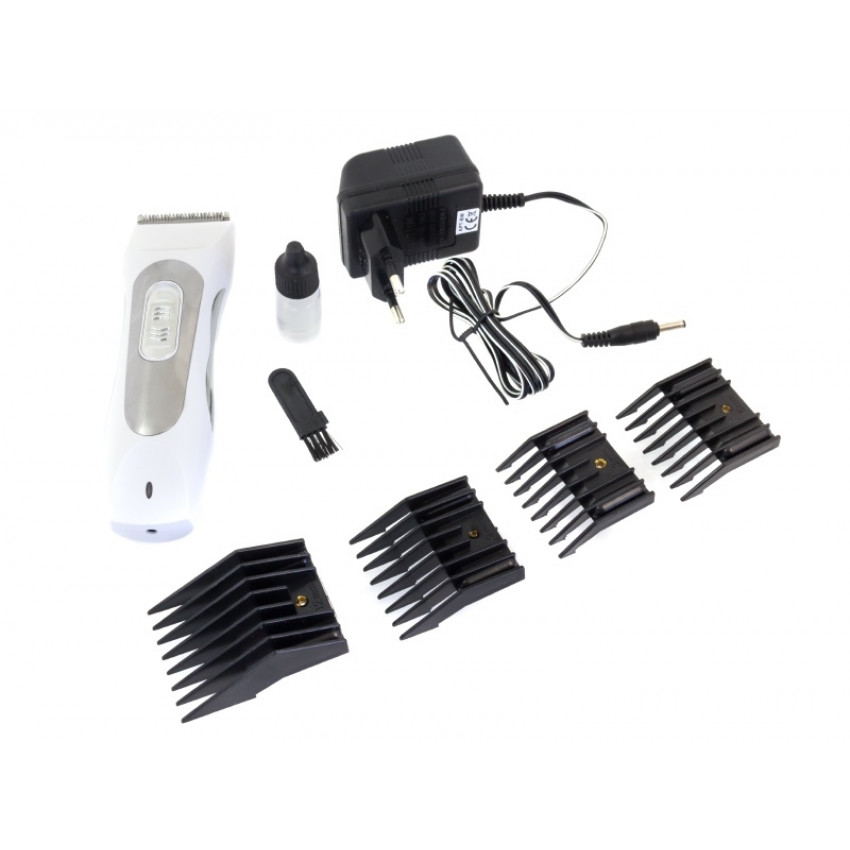 Použitie batérie umožňuje prístroju pracovať ďaleko od zdrojov elektrickej energie. Zariadenie je tiché a nezaťažuje zvieratá. Je tiež možné nastaviť úroveň výkonu a ďalšie stlmenie holiaceho strojčeka. Sada obsahuje 4 nástavce (3, 6, 9 a 12 mm), olej na údržbu čepelí a čistiacu kefu. Strihací strojček na psa má dokonale riešený chladiaci systém, ktorý zaručuje možnosť nepretržitej prevádzky bez prehrievania.