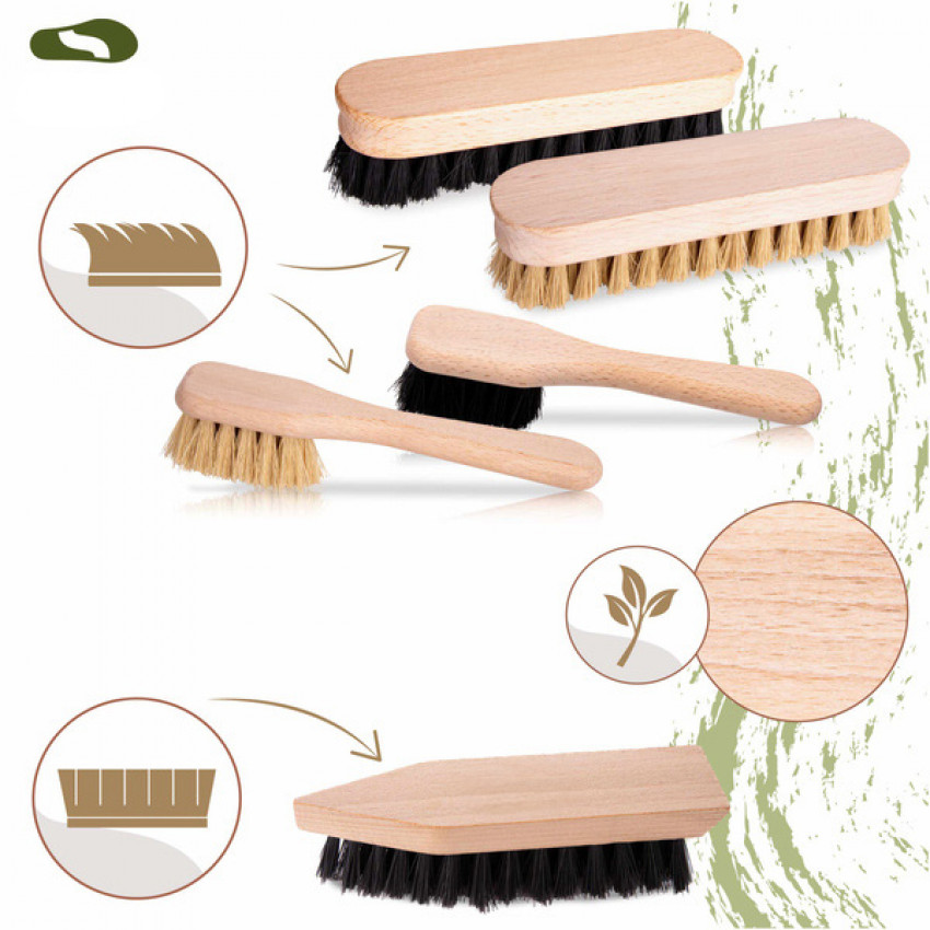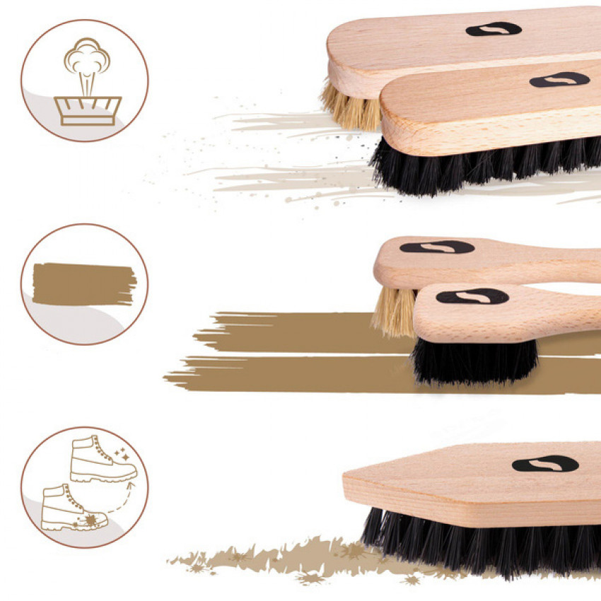 Každá kefa v súprave má svoje špecifické použitie. Jemné štetiny sú určené na leštenie a čistenie, husté štetiny slúžia na nanášanie krémov a pást, a tvrdé štetiny umožňujú odstraňovanie hrubých nečistôt.