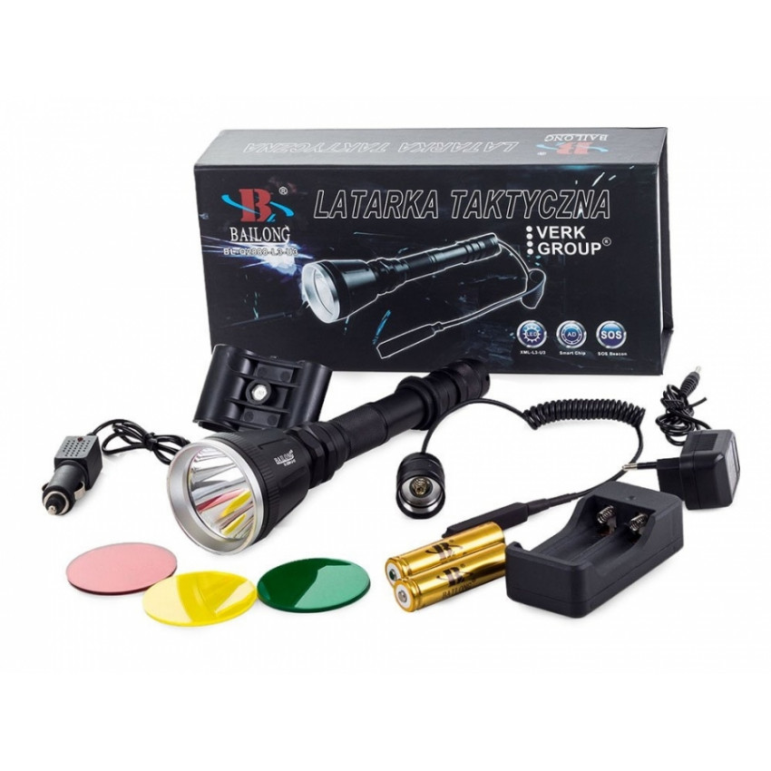 Taktická baterka bola navrhnutá pre taktické použitie. Môžu hju využívať uniformované služby, armáda, poľovníci, milovníci prírody alebo na domáce použitie. Vďaka použitiu tesniaceho systému a veľmi dobrého uchytenia prvkov je baterka odolná proti silnému dažďu, vlhkosti a bahnu. Svietidlo bolo vybavené najnovšou polovodičovou diódou XM-L3-U3. Toto je najsilnejšia LED dióda, ktorá môže oslepiť každého. Životnosť diódy dosahuje až 100 000 hodín. Na napájanie baterky sa použili vysokokvalitné lítium-iónové 18650 batérie / články, čo umožňuje, aby baterka vydržala dlhú dobu. Sada ďalej obsahuje 3 vymeniteľné šošovky - červenú, žltú, zelenú. Sada obsahuje aj rukoväť na pripevnenie baterky na strelnú zbraň a gélový spínač, ktorý umožňuje zapnúť baterku bez toho, aby ste ju držali v ruke. Celá súprava je zabalená v elegantnej a pevnej krabici, v ktorej má každý prvok svoje miesto, čo z nej robí ideálny darček.