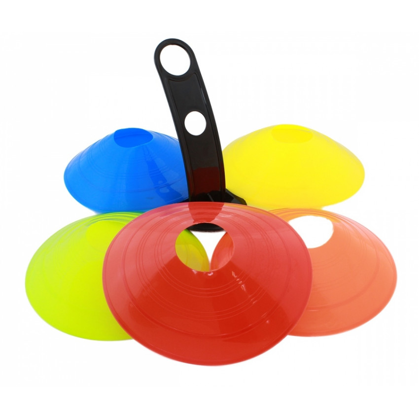 Sú ideálne na organizovanie tréningového priestoru alebo na rozdelenie do tímov v tímových športoch. Umožňujú pohodlne označiť zóny a oblasti hry na tréning. Okrem toho obsahuje sada špeciálny stojan s držiakom, ktorý vám umožní pohodlne ukladať všetky disky.