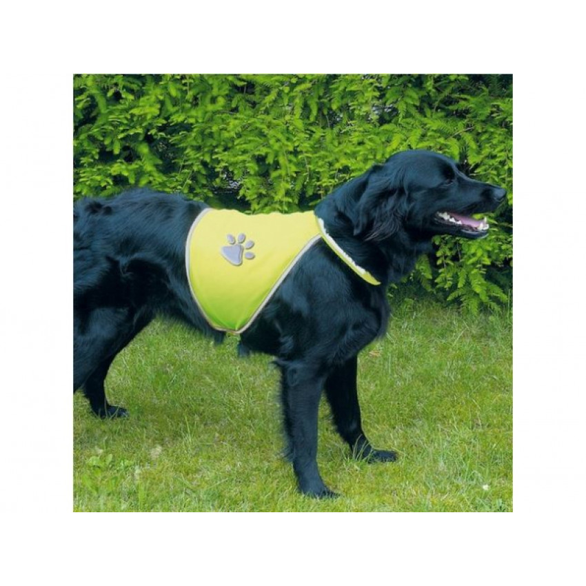 Neónovožltá bezpečnostná vesta pre psov s reflexnými okrajmi a labkou zvyšuje bezpečnosť vášho psa pri venčení. Nastaviteľná na bruchu a krku, neobmedzuje psa v pohybe a je ľahko prispôsobiteľná.