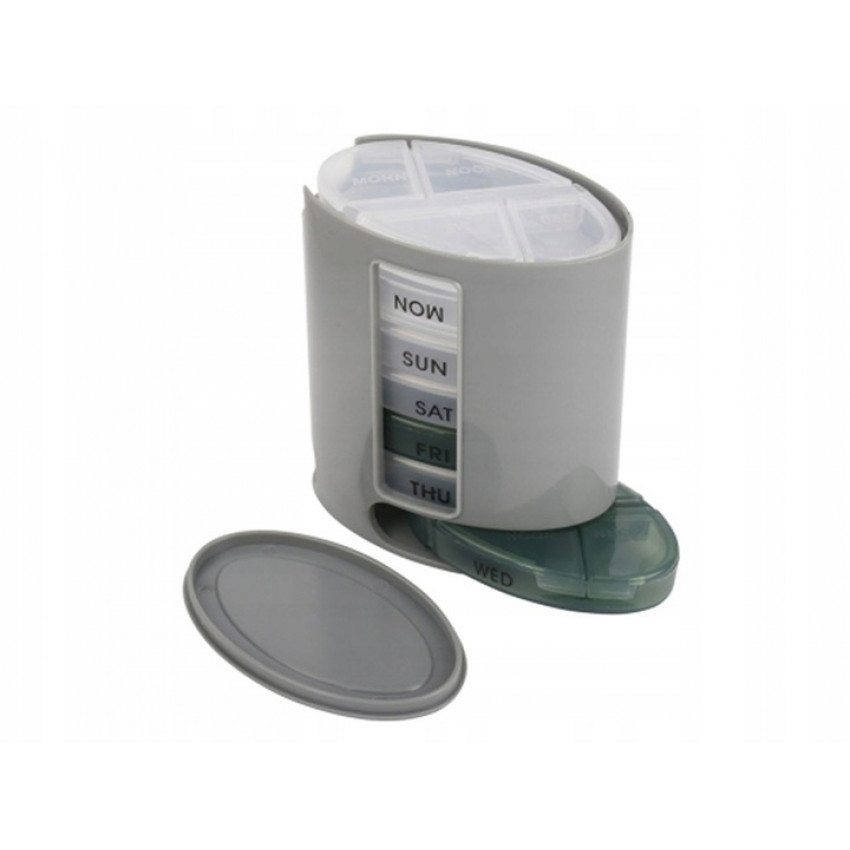Tento praktický dávkovač na lieky v anglickom jazyku Vám umožní prehľadne zoradiť tabletky a vitamíny. Dávkovač liekov týždenný obsahuje priehradky, z ktorej každá je vyberateľná, takže si ju môžete so sebou zobrať hocikedy a užiť tabletky, kedy potrebujete. Každá priehradka je farebne aj písomne rozlíšená čo zabezpečuje jednoduché dávkovanie.