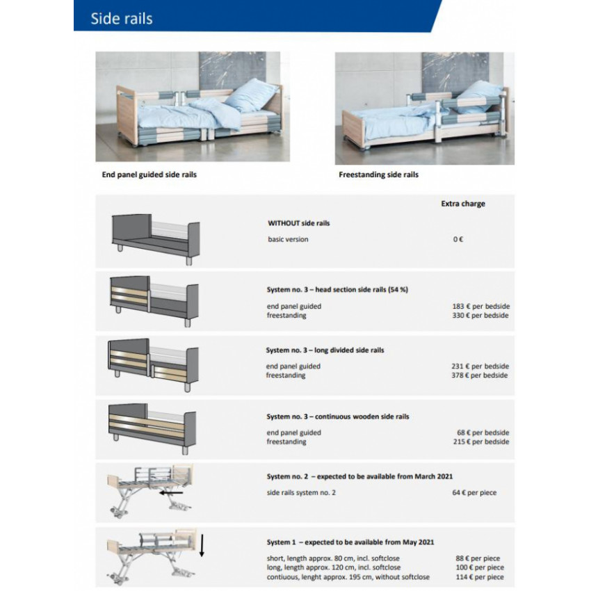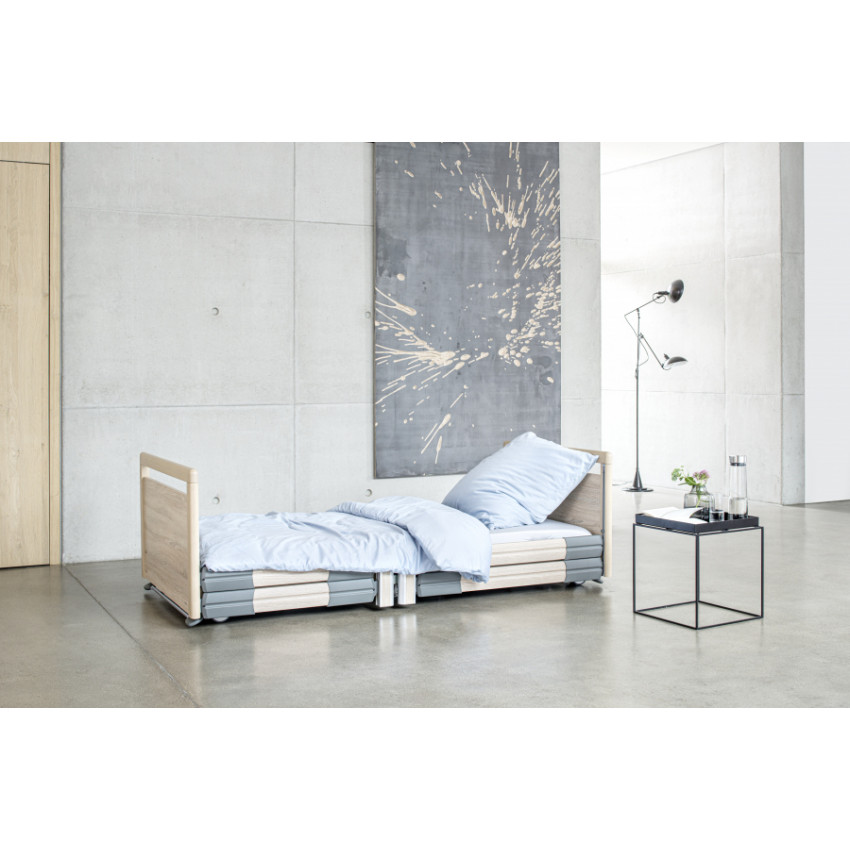 Rôzne polohy v sede a v ľahu, ako aj rôzne systémy povrchov v ľahu poskytujú individuálnejší komfort pri ležaní. Integrované predĺženie postele a bočnej koľajnice bez náradia pre ľahké a rýchle prispôsobenie sa veľkosti tela obyvateľa. Extrémne stabilná hlavová tyč, vhodná aj na intenzívne používanie.
