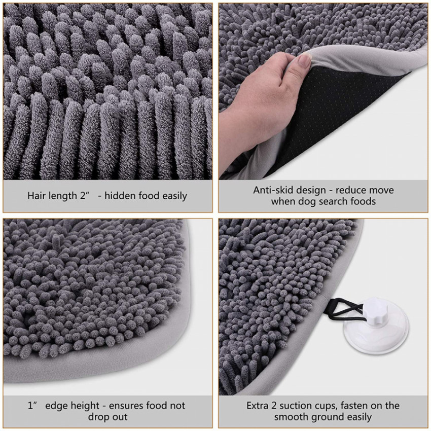 Ide o unikátnu podložku na výcvik psa, ktorá umožňuje vášmu psovi nájsť občerstvenie alebo malé hračky ukryté v podložke. Pomáha trénovať čuch vášho psa, spotrebovať energiu vášho psa a schudnúť. Udržujte svojho psa zamestnaného a vyhnite sa tomu, aby sa váš pes nudil a zaoberal sa deštruktívnym správaním. Dodáva sa s 2 prísavkami, môžete ju pripevniť na hladký povrch. Spodná časť je z protišmykovej látky, ktorá účinne drží podložku a zabraňuje psovi v pohybe podložky, keď váš pes hľadá potravu.