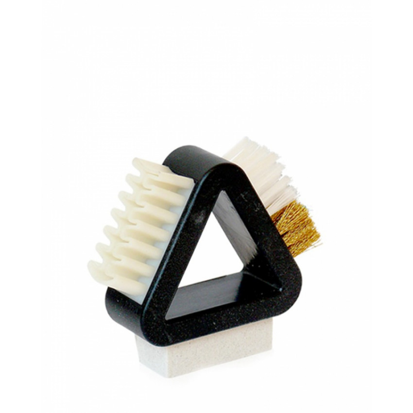 Kombinuje až 3 rôzne nástroje pre starostlivosť o semišovú a nubukovú obuv: krepovú kefku, kocku na čistenie semišu a kombinovanú kefu PVC a mosadz. Umožňuje jemné čistenie bez použitia chémie a vody.