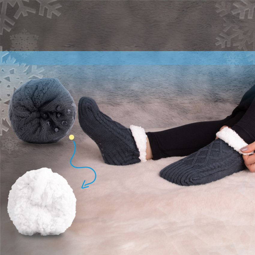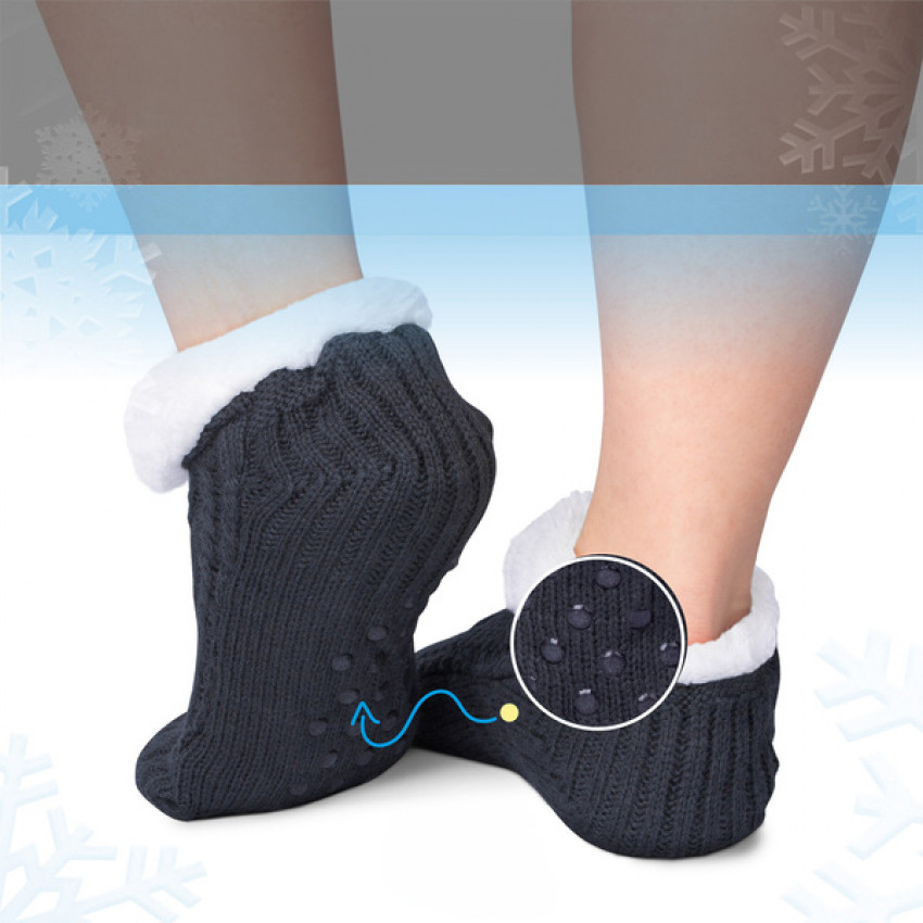 Teplé a pohodlné na každodenné nosenie v chladných dňoch, tieto ponožky sú vybavené unikátnou protišmykovou podrážkou pre bezpečný krok na akomkoľvek povrchu.