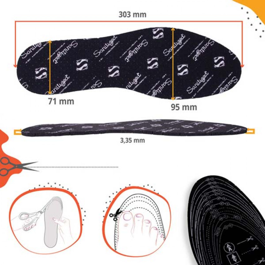 Vďaka univerzálnej veľkosti a možnosti strihania podľa šablóny sa tieto vložky dokonale prispôsobia každému chodidlu a sú ideálne pre všetky typy obuvi - od každodenných topánok, cez papuče a balerínky, až po pracovnú obuv.