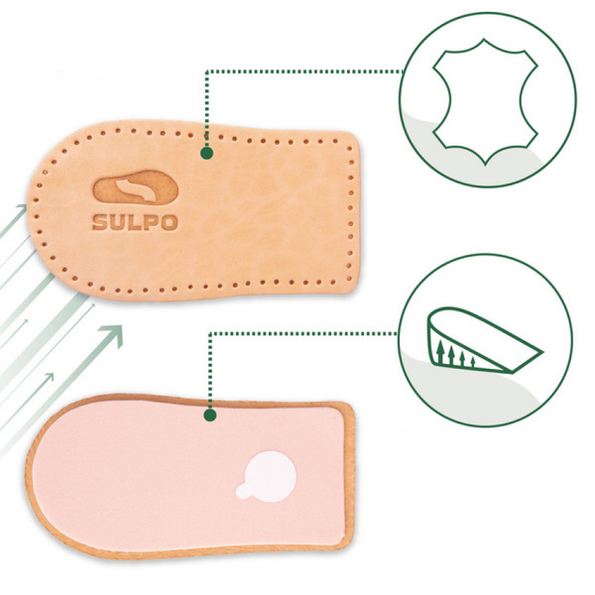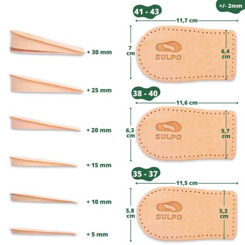 Z korku a pravej kože vyrobené kompenzačné podpätky sú ideálnym riešením pre vyrovnávanie dĺžky nôh alebo zvýšenie vzrastu. Ľahkosť, amortizácia pre pätu a možnosť zvýšiť vzrast sú hlavné výhody týchto vložiek.