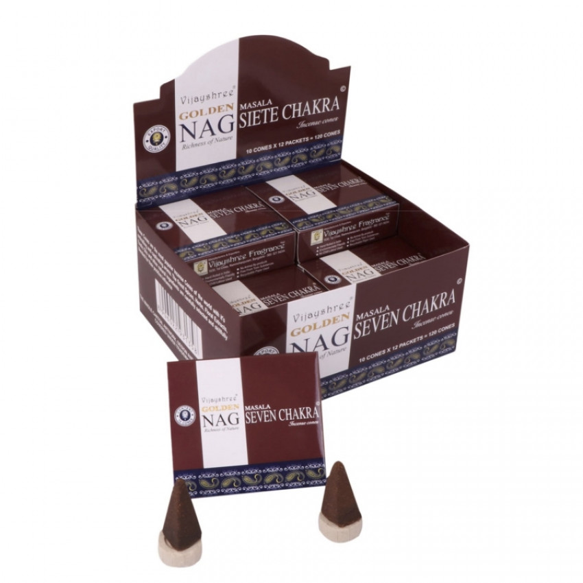 Harmonizujúcu silu VIJAYSHREE GOLDEN - NAG SEVEN CHAKRAS Masala vonných kužeľov môžete objaviť aj vy. Tieto kužele sú synonymom pre uvoľnenie a čistotu mysle. Ručne vyrobené v srdci Indie, tieto kužele sú zmesou najkvalitnejších korení, bylín, kvetinových extraktov a exotických olejov. Ich jedinečná aróma umožňuje podporovať uvoľnenie, zmierniť stres a harmonizovať sedem chakier. Bez použitia toxických látok a s dôrazom na ekologickú udržateľnosť, VIJAYSHREE GOLDEN ponúka nielen krásne vône, ale aj čisté svedomie.
