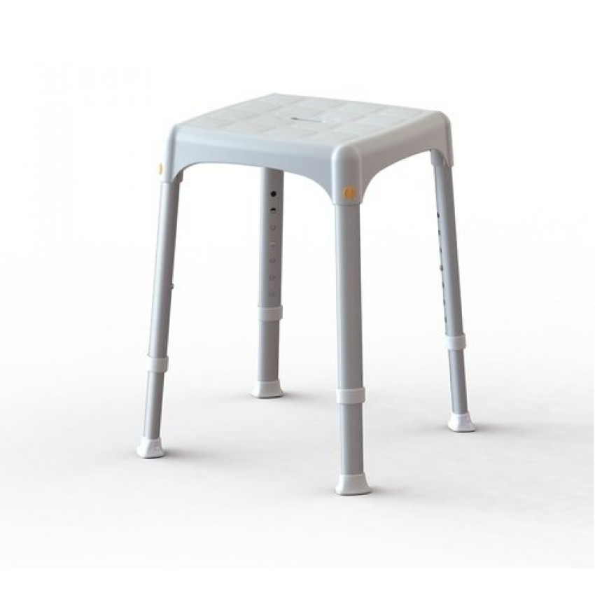 Štvorcová hliníková sprchová stolička, odolná do 120 kg.
