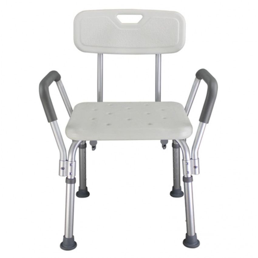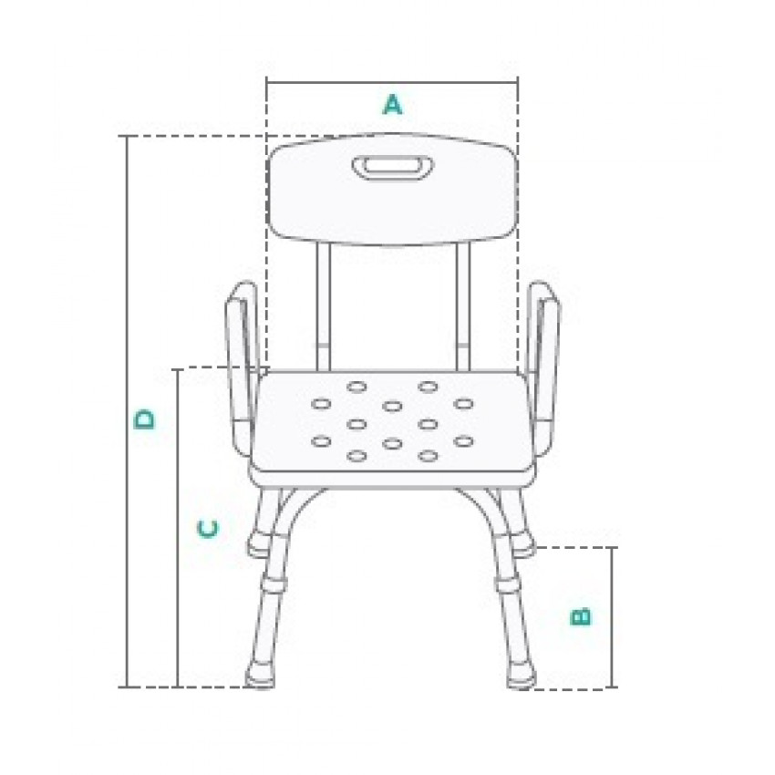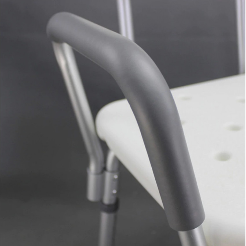 Stolička do sprchy sa odporúča osobám so zníženou pohyblivosťou, ktorí nedokážu samostatne vykonávať každodenné činnosti. Stolička má široké plastové operadlo a tým poskytuje dodatočné pohodlie a podporu pre užívateľa. Na stoličke sa nachádzajú aj madlá, ktoré uľahčujú zachovanie rovnováhy. V prípade potreby sa dá použiť aj bez opierky, alebo bez madiel. Stolička je vybavená 4 (gumovými) protišmykovými nohami, ktoré zaručujú bezpečnosť pri používaní. Pre vyššie pohodlie pacienta je možné nastaviť výšku stoličky. Na operadle sa nachádza otvor, ktorý vám uľahčuje prenášanie. Jednoduchá a rýchla montáž a demontáž bez použitia nástrojov.