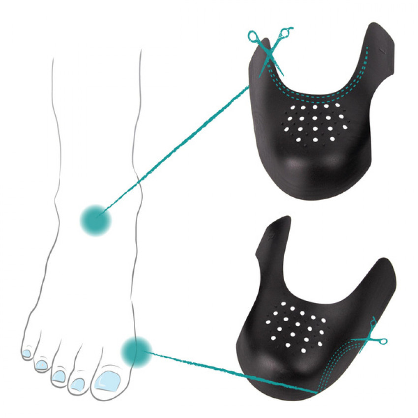 Výstuhy sú jednoduché na použitie. Stačí ich vložiť do špičky topánok a prispôsobiť ich veľkosť.