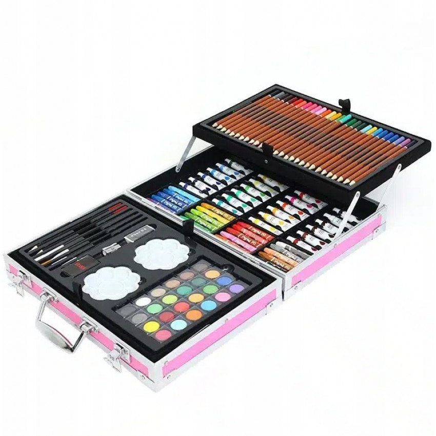 Bohatá paleta farieb a rôzne druhy doplnkov sa vám budú hodiť pri skicovaní, vyfarbovaní a mnohých iných prácach. Prebuďte v sebe umelca a vyjadrite sa prostredníctvom farieb! Tento produkt sa odlišuje od ostatných umeleckých súprav, pretože je uzavretý v úhľadnom, vystuženom kufríku z odolného plastu. Všetky prvky súpravy sú úhľadne umiestnené vo vnútri a celé je možné uzavrieť silnými zámkami. Súpravu si môžete vziať všade so sebou vďaka pohodlnej rukoväti.