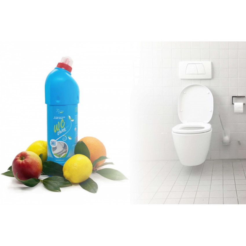 Ekologický čistiaci prostriedok WC Shine odstraňuje nečistoty pri najnižšej koncentrácii. Zanecháva toaletu bez baktérii a zápachu a navyše chráni pred nečistotami. Prostriedok WC Shine neobsahuje žiadnu negatívnu zmes, ktorá by mohla mať negatívny vplyv na planétu Zem (je biologicky odbúrateľný až na 98%) a môže byť použitá v ekologických čističkách odpadových vôd.