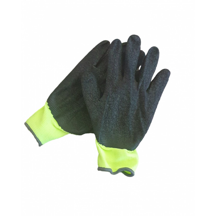 Materiál rukavíc je kombinácia polyesteru a latexu, čo zaisťuje ich odolnosť a dlhú životnosť.