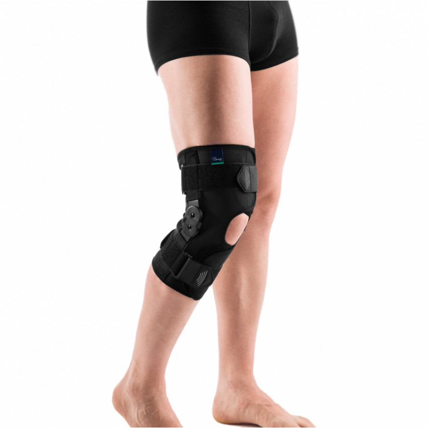 Potrebujete stabilizáciu a oporu pre váš kolenný kĺb? Táto zaťahovacia ortéza poskytuje pevné spevnenie a komfort vďaka kvalitnému elastickému materiálu, ktorý je priedušný, odvádza vlhkosť a zabraňuje prehriatiu. Anatomicky tvarovaný otvor s penovým krúžkom odľahčuje tlak na kolenný kĺb, zatiaľ čo polycentrické dlahy zabezpečujú bočnú a mediálnu stabilizáciu.