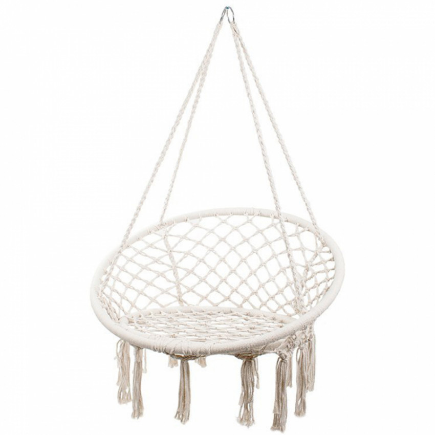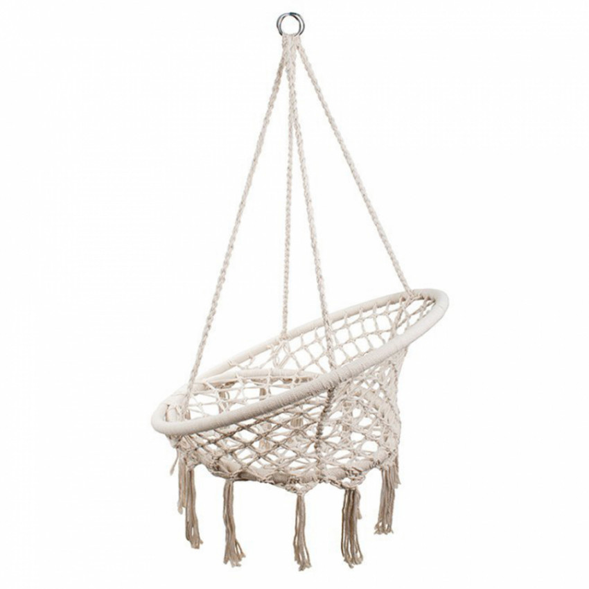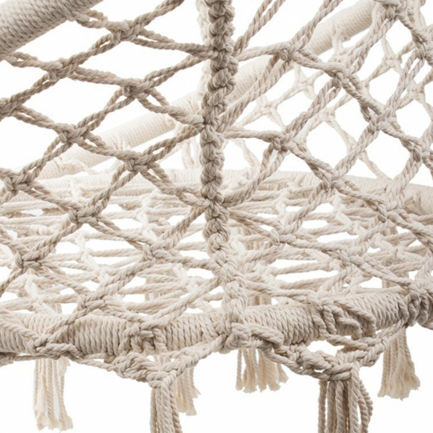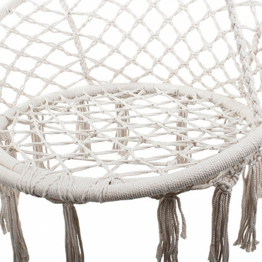 Štýlové závesné kreslo v boho štýle ponúka pohodlie a stabilitu doma aj vonku. Odolné materiály a nosnosť do 120 kg zaručujú bezpečný oddych. Vhodné na balkón, terasu aj do interiéru.