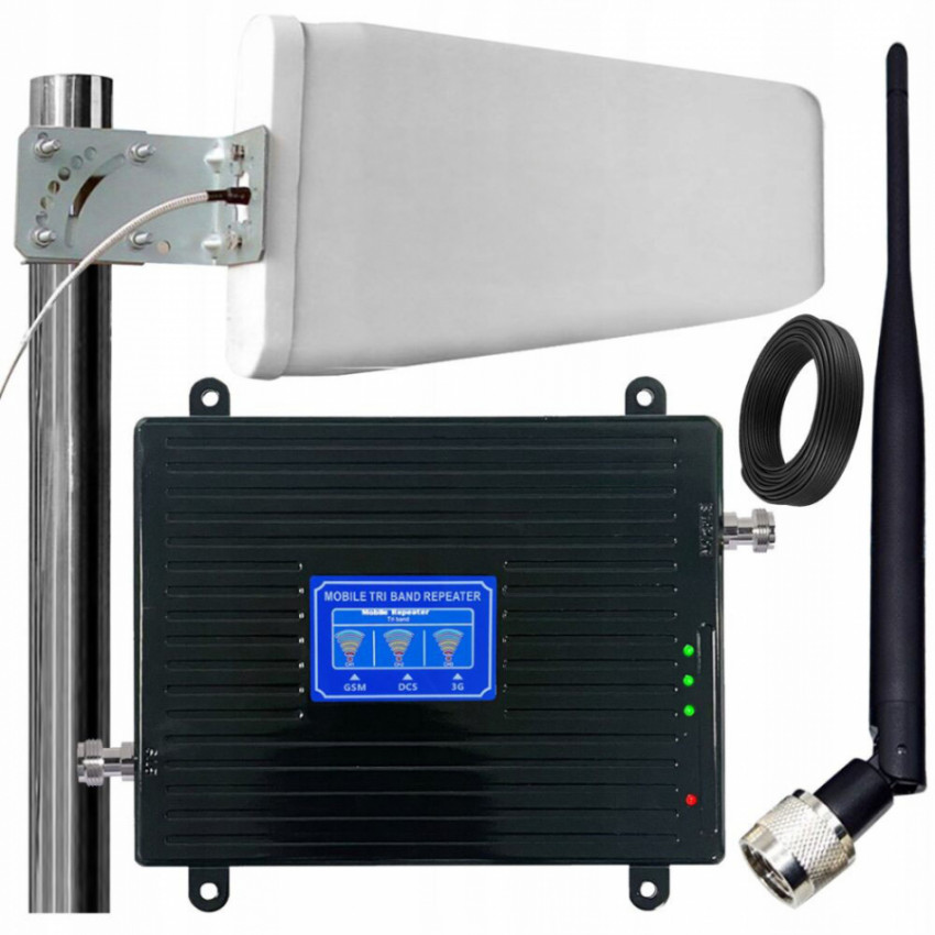 GSM/3G/4G LTE opakovač s LCD displejom Zosilňovač poskytuje stabilný 2G, 3G a 4G LTE signál na ploche až 2000 m2. Vybavený LCD displejom, LPDA 20 dBi anténou a dvomi anténami na zabezpečenie optimálnej prevádzky.